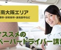 ペーパードライバー講習を南大阪(堺・岸和田・泉佐野などの大阪南部)で受けられるスクールをまとめて紹介します。教習所か出張型か、値段の安いかどうか、女性におすすめなどカテゴリ別に東京のペーパードライバー講習について説明します!